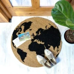 Features & Benefits: Artsy Globe Circle Coir Doormat Non Slip Indoor Outdoor Mats