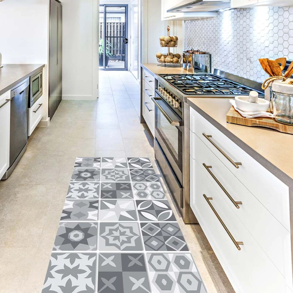 With various sizes to choose from, you can use this monochrome tile effect Artsy Lefkada Vinyl Floor Mat in any room with hard flooring that requires additional protection. It features a non-slip backing for added stability and safety, and its waterproof properties make it excellent for safeguarding your hard floor from scuffs, spills and stains.