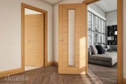 This internal door comes fully glazed with obscure glazing. Obscure glazing allows natural light into a room whislt maintaining a level of privacy.